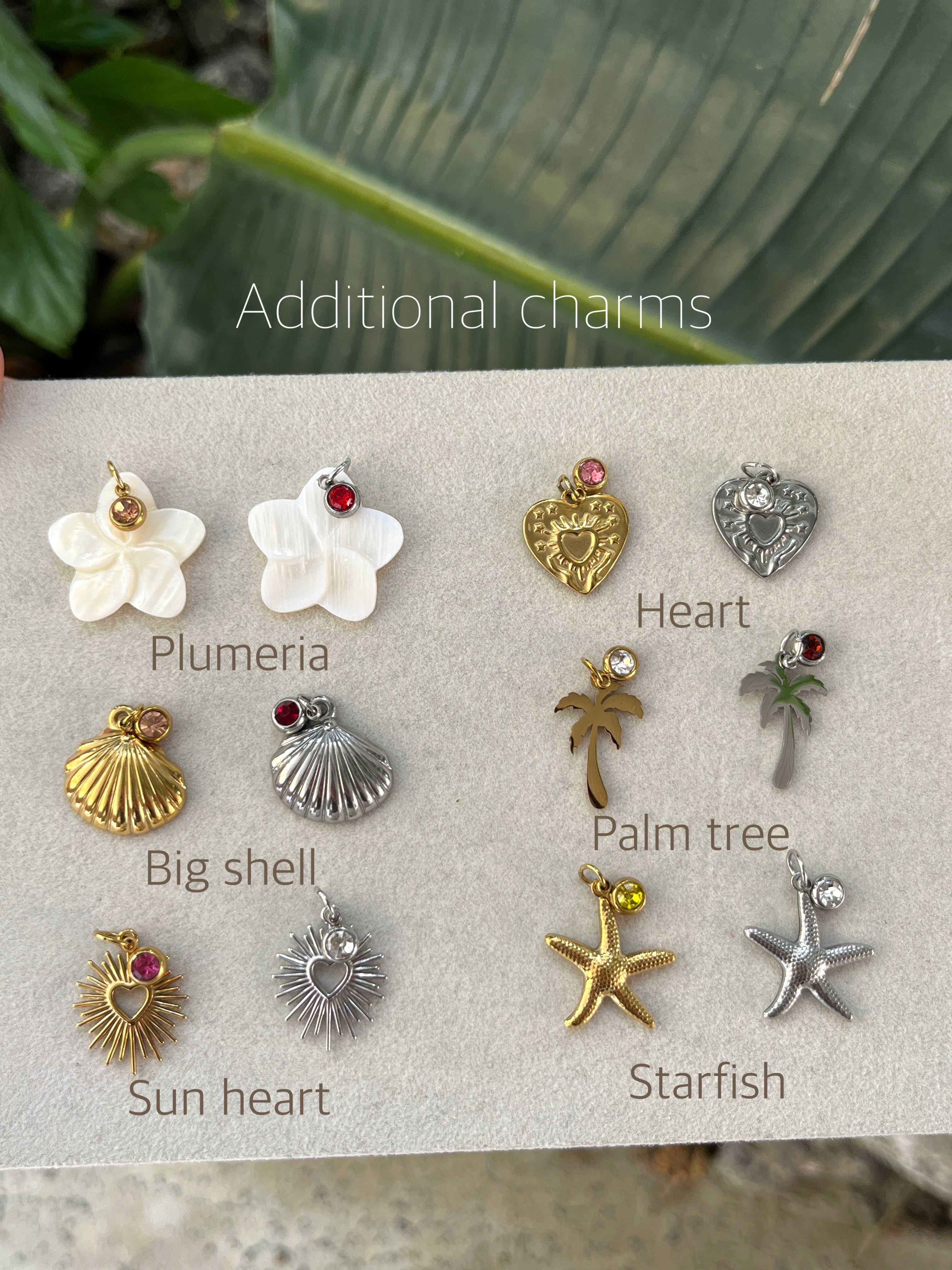 *オプションで追加可能なチャームは、ネックレスごとにチャームの色味が決まっています。